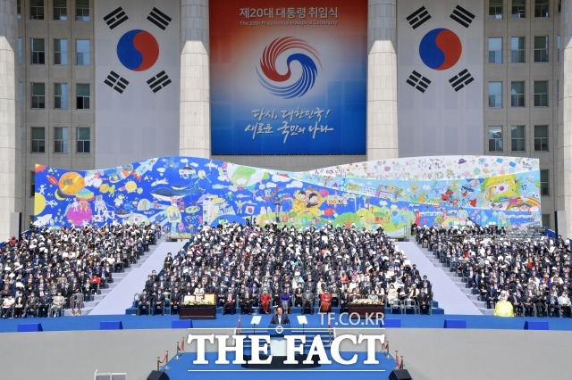 지난 5월 10일 국회 앞 잔디마당에서 취임식을 가진 윤 대통령은 정권교체라는 국민의 바람을 안고 새출발을 알렸다.