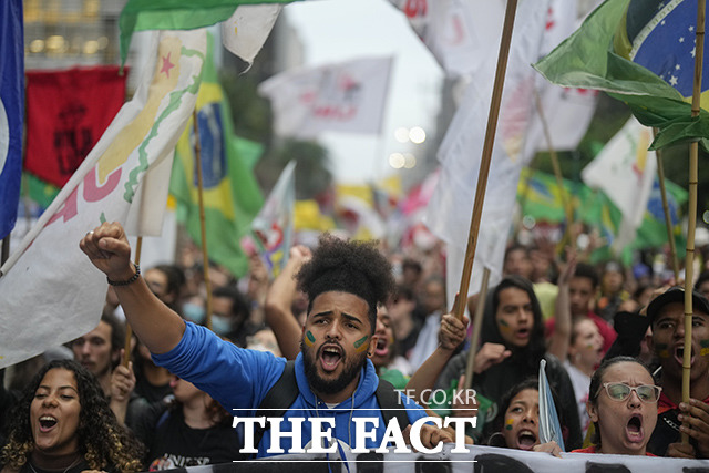 브라질, 대선 결선투표 앞두고 '대규모 대학생 시위' 벌어져 [TF사진관]