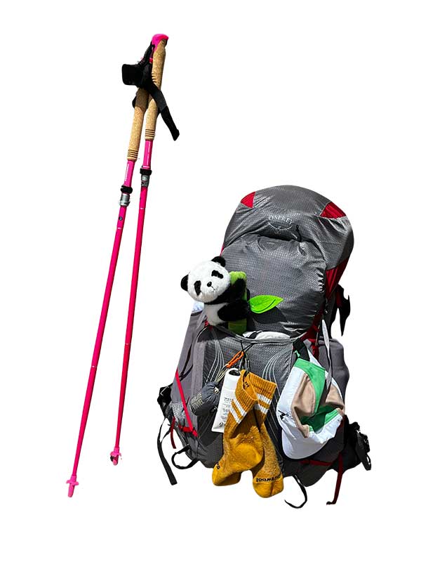 ② 스틱 컴퍼델 카본 클라우드 FXP 바리오. 본래는 트레일 러너를 위해 만들어진 카본 스틱이다. 카본 소재로 되어 매우 가벼운데다가 펼치자마자 각 마디가 저절로 결합된다. 고산에서 불필요한 동작을 줄여 주는 것이 최대 장점이다.
