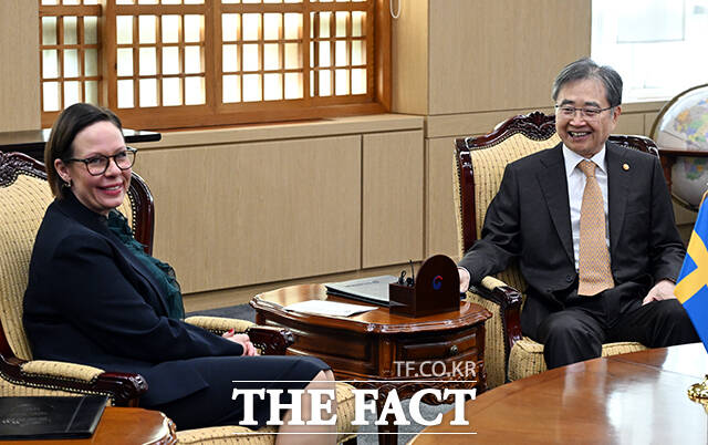 [더팩트ㅣ임영무 기자] 조현 외교부 장관이 16일 오전 서울 종로구 외교부 청사에서 말메르 스테네르가드 스웨덴 외교부 장관과 면담을 갖고 있다.