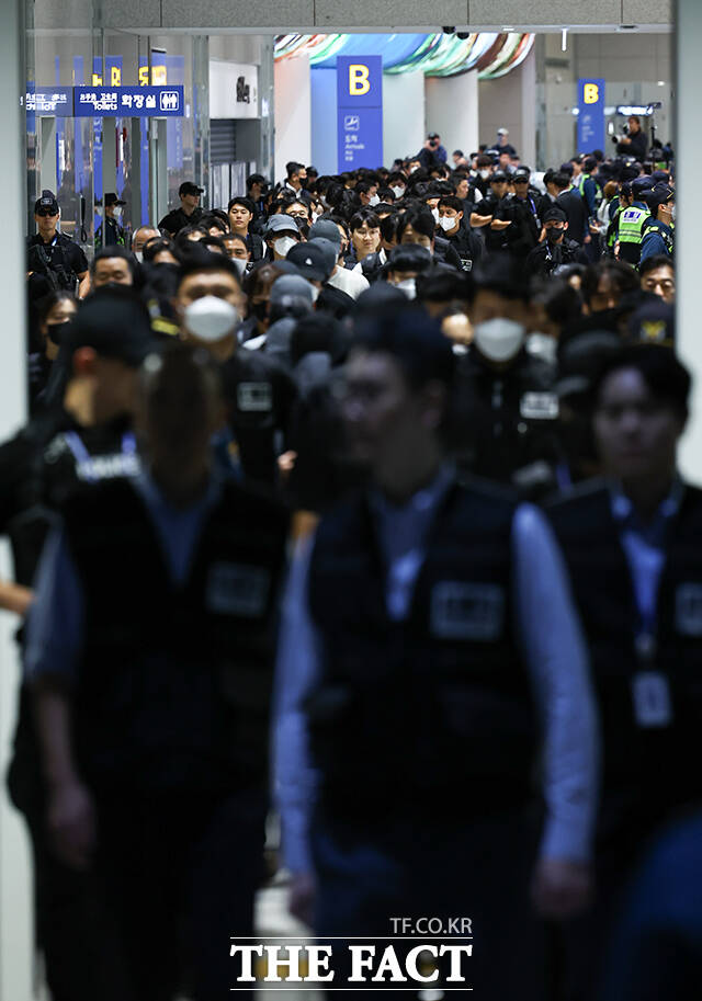 인천공항에 도착한 64명은 입국 절차를 마친 후 호송차 23대를 이용해 관할 경찰서로 분산·압송됐다.
