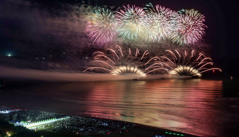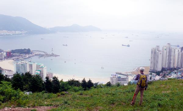 시명산에서 동해로 뻗어간 산허리가 온통 울긋..