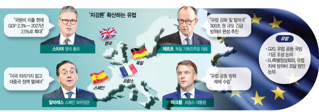 -유럽이 자강(自强)'에 속도를 내고 있습니다. 트럼프 미국 행정부가 유럽연합(EU) 각국에 방위비 증액을 압박하고 있고, 무엇보다 우크라이나전(戰) 종전 협상에서 러시아와 ‘밀착’을 과시하면서 더 이상 미국에 안보를 의존할 수 없다는 인식이 확산하고 있기 때문입니다. 독일, 영국, 스페인, 프랑스 등 EU 주요국 정상들은 국방비 증액과 공동 방위 협력 등을 선언하고 나섰습니다.