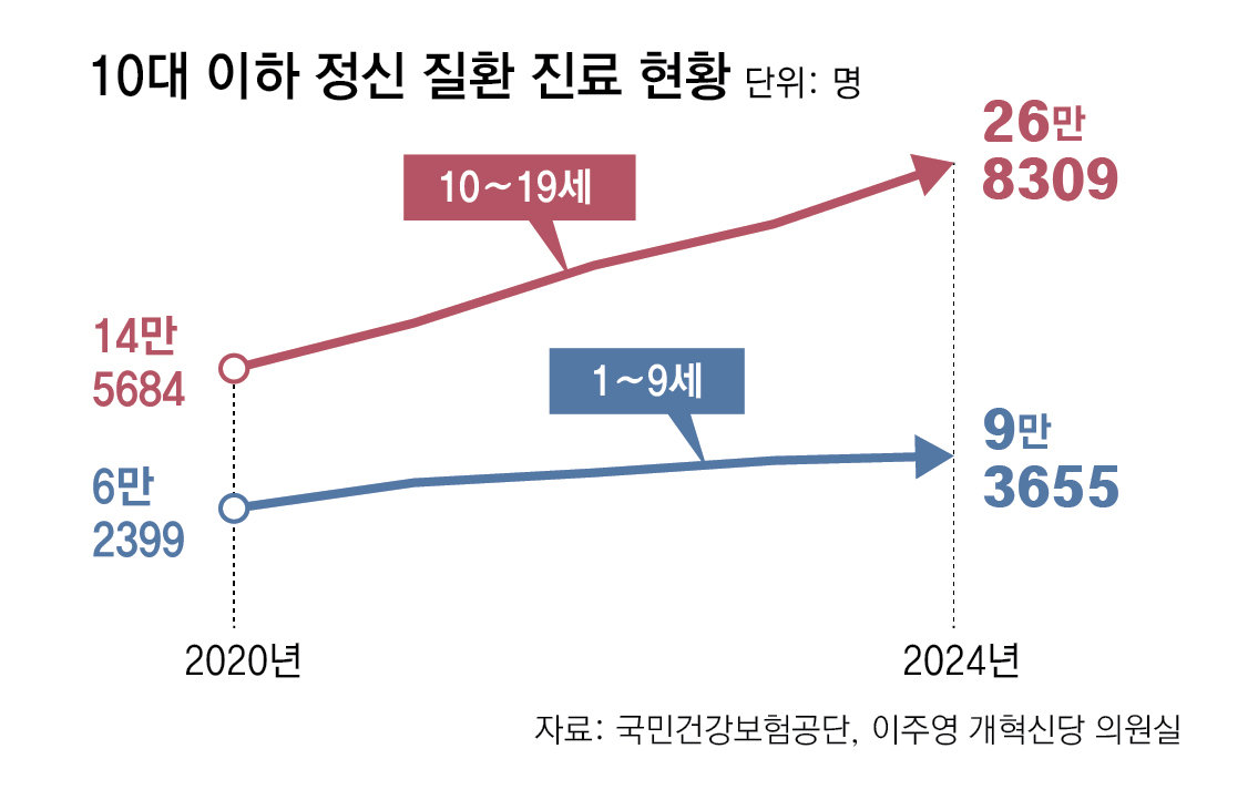 초등학생 김모 군(8)은 주의력결핍 과잉행동장애(ADHD) 진단을 받고 지난해부터 약을 먹고 있다. 입학 초기부터 수업 종이 울려도 교실로 돌아오지 않거나, 교단에 필통을 던지는 등 감정을 조절하지 못하는 일이 반복됐다. 김 군 어머니는 “어릴 때 스마트폰을 보다 뺏으면 돌려줄 때까지 울음을 그치지 않아 그냥 두는 날이 많았다”며 “약을 먹고 감정조절이 나아지긴 했지만, 언제 어떻게 나빠질지 몰라 늘 불안하다”고 했다.김 군처럼 정신 질환으로 진료를 받은 10세 미만 아동이 지난해 10만 명에 육박한 것으로 나타났다. ADHD에 대한 인식 확산으로 조기 진단이 늘어난 것이 가장 큰 원인으로 꼽히지만, 일각에선 ‘공부 잘하는 약’으로 불리는 ADHD 약을 미취학 아동에게까지 과도하게 처방한다는 우려도 나온다. 의료계에선 뇌 발달 시기에 디지털 기기에 너무 일찍 노출되면서 아동 정신건강이 무너지고 있다고 지적했다.● ADHD 진단 증가. 오남용 우려도8일 국회 보건복지위원회 소속 개혁신당 이주영 의원이 국민건강보험공단에서 받은 자료에 따르면 지난해 정신 질환으로 병원 진료를 받은 1~9세 아동은 9만3655명으로 집계됐다. 2020년 6만2399명에서 4년 만에 50.1% 늘었다. ADHD 등 운동 과다장애, 우울장애, 불안장애, 적응장애 등 소아 정신건강 질환 진료 인원을 모두 포함한 수치다.건강보험심사평가원에 따르면 10세 이하 ADHD 급여 의약품 처방 인원은 2021년 2만7865명에서 지난해 5만3053명으로 3년 새 1.9배로 늘었다. 의료계에선 ADHD 증상에 관심을 갖는 부모가 늘면서 과거 ‘산만한 아이’ 정도로 여겼던 ADHD 환자가 조기 발견되는 것도 영향을 미친 것으로 분석한다.진단 인원이 늘어나는 것보다 약물에만 의존하는 문화가 더 큰 문제라는 게 전문가들의 공통된 견해다. 이해국 의정부성모병원 정신건강의학과 교수는 “아이들의 에너지와 욕구가 잘 조절하도록 방과 후 운동, 놀이 치료 등 다양한 노력이 필요한데, 무조건 약 처방에만 의존하고 있다”고 우려했다.아이 집중력을 높이려는 목적으로 ADHD 약을 학습 보조 도구로 쓰는 경우도 있다. 수험생 학부모 사이에서 유행하는 ADHD 약 복용 연령대가 ‘4세 고시’ ‘초등 의대반’ 등 사교육 열풍을 타고 미취학 아동까지 내려갔다는 것이다. 수도권 한 대학병원의 정신건강의학과 교수는 “강남에서 ADHD 처방 받은 아이는 다른 지역에서 주의력 검사를 다시 해야 한다는 말이 나올 정도”라고 했다.● 4세 고시, 숏폼에 무너지는 아동 정신건강전문가들은 과도한 선행 학습과 디지털 기기 노출이 아동 정신건강을 해치고 있다고 우려한다. 심평원에 따르면 지난해 서울 강남 3구(강남·서초·송파)에 거주하는 9세 이하 아동이 우울증·불안장애 진단을 받아 건강보험금이 청구된 건수는 3309건으로 4년 만에 3.2배로 급증했다.천근아 대한소아청소년정신의학회 이사장(세브란스 어린이병원 소아정신과 교수)은 “유아기에 가장 중요한 것은 정서적 안정과 사회성”이라며 “15분 집중도 어려운 아이를 (선행 학습을 위해) 억지로 앉혀 놓으면 스트레스 호르몬이 나와 뇌 기초공사를 막는다. 아동 학대나 마찬가지”라고 지적했다.디지털 기기 중독에 대한 경각심을 높여야 한다는 목소리도 높다. 갈수록 신체 활동이나 또래와의 교류보단 스마트폰에 의존하는 아이들이 많아지고 있어서다. 이 교수는 “집에 혼자 남아 게임, 숏폼(짧은 동영상) 등에 중독된 아이들이 충동 조절이나 새로운 환경 적응에 어려움을 호소하며 병원을 많이 찾는다”며 “청소년 자살, 자해 등 더 심각한 문제로 확산하지 않도록 가정과 학교, 정부가 적극 나서야 한다”고 말했다.이 의원은 “아동청소년 정신건강은 통계 작성부터 치료 과정까지 성인과는 다른 분석과 접근이 있어야 한다”며 “아동청소년 정신건강 개선과 자살 위험 감소를 위해 이들에게 특화된 정신건강 정책이 필요하다”고 강조했다.박성민 기자 min@donga.com}