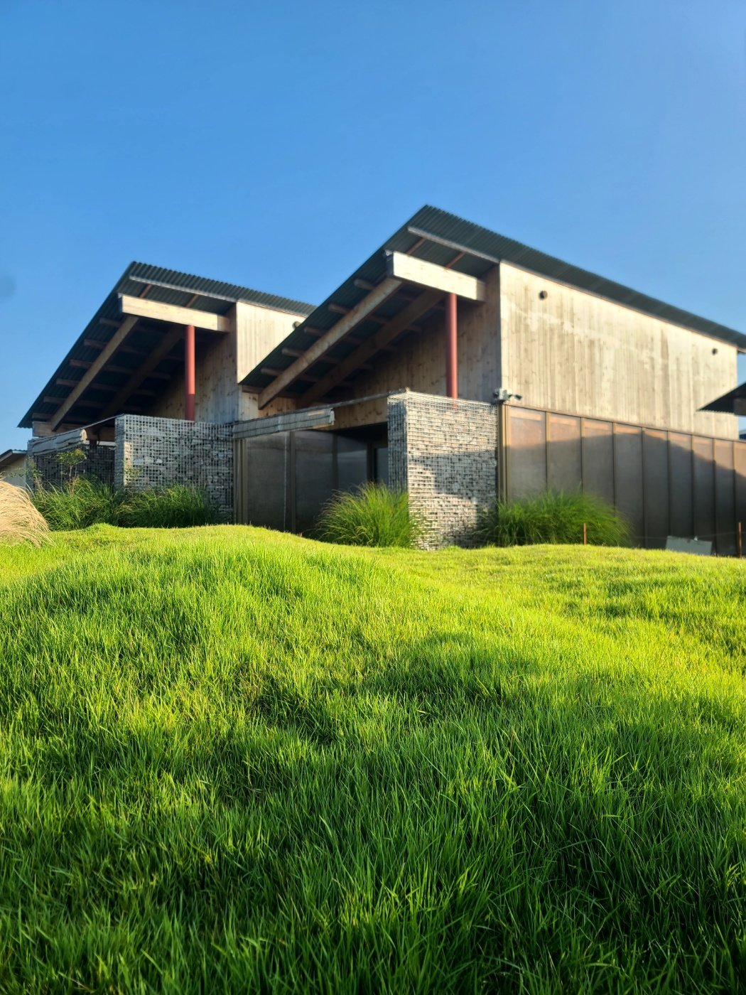 이 이야기의 화자는 맏딸 김서연 씨다. ‘파란곳간’에 다녀온 지 일주일이 지났지만, 그곳에서의 시간이 그리움으로 남았다. 그 바탕에는 건축적 아름다움이 있다. 막사발에서 발견되는 ‘막의 미학’을 한국 미감의 핵심이라고 생각하는 조 건축가는 튼튼한 나무 기둥 위로 골강판을 얹고 철문 대신 나무문을 달았다. 욕실 벽도 나무로 마감해 오두막에 들어온 것 같은 기분이 든다. 유리벽과 폴리카보네이트 사이에 소독한 볏짚을 빼곡하게 넣어 단열재 대신 사용하고, 마당에는 땅을 파 화로를 넣었다. 그 옛날 평상을 중심으로 온 식구가 한데 모여 수박도 먹고, 모기도 쫓으며 하늘의 별을 올려다보던 기억과 연결된 정서다.