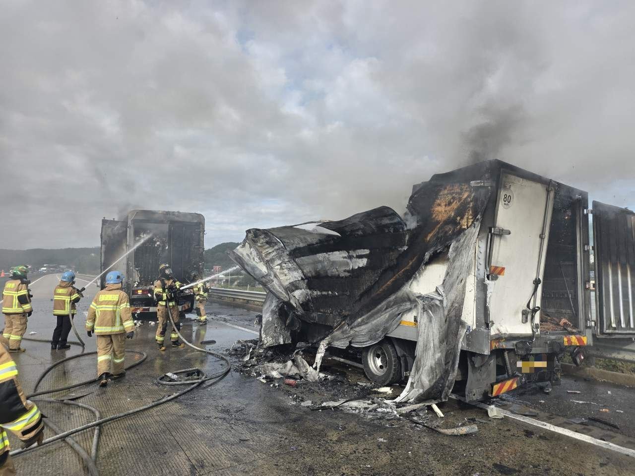 소방당국에 따르면 사고는 25t 트럭 화물차와 3.5t 화물차가 추돌하면서 발생했다. 3.5t 화물차는 사고 이후 앞서가던 승용차를 들이받았고 승용차는 또 다른 25t 화물차와 추돌했다.
