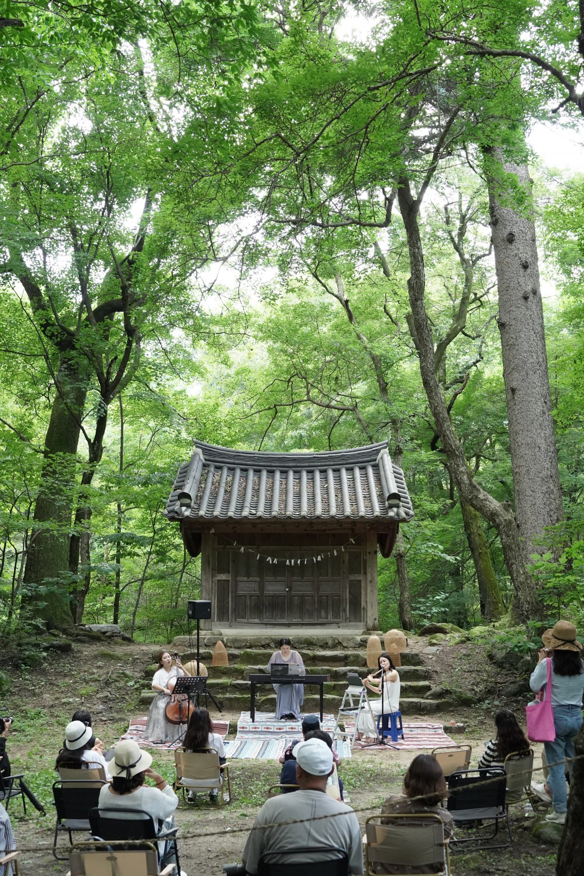 강원 원주시 신림면 성황림 당집 앞에서 올 7월 말 ‘음악의 뮤즈를 만나다’라는 주제로 열린 ‘원주 사색 크리에이투어’ 작은 음악회. 원주시농촌체험휴양마을협의회 제공