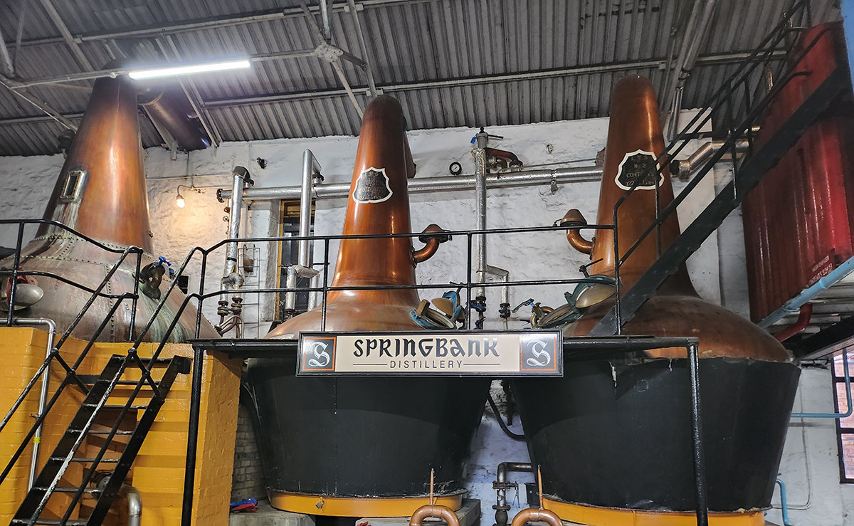 스프링뱅크가 있는 킨타이어반도의 캠블튼은 바다를 사이에 두고 또 다른 위스키로 유명한 두 곳, 아일라섬 남부의 포트엘렌과 북아일랜드의 부시밀즈와 정삼각형을 유지한다. 스프링뱅크가 위스키를 100% 수작업으로 만든다는 의미는 몰팅, 즉 엿기름을 만드는 작업을 사람의 손으로만 하는 유일한 증류소란 뜻이다. 증류 횟수 또한 2.5회란 알쏭달쏭한 횟수로 유명하다. 1차 증류한 원액을 2차 증류기로 다 보내지 않고 80%만 보내고, 3차 증류할 때 남은 20%와 2차 증류의 결과물을 섞어 증류하기에 2.5회 증류라 표현하지만 엄밀히 계산하면 2.2회 증류라 할 수 있다. 즉 스코틀랜드의 2회 증류, 아일랜드의 3회 증류를 절충한 방식으로 양쪽 모두의 영향을 받아 균형감 있는 위스키를 생산한다는 의미이기도 하다. 세 지역 모두 위스키로는 큰소리를 낼 수 있는 곳으로 가까운 바다를 사이에 두고 서로 영향을 받아왔기에 가능했던 것으로 짐작한다.