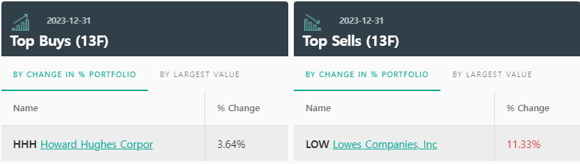 애크먼이 이끄는 헤지펀드 퍼싱스퀘어캐피털이 미국 증권거래위원회(SEC)에 제출한 작년 4분기 말 주식 보유 현황 공시(13F)에 따르면 이 회사는 주택 리모델링 용품 업체 로스(LOW), 외식업체 치폴레(CMG), 호텔기업 힐튼월드와이드 (HLT) 등 주식 지분을 줄였다.